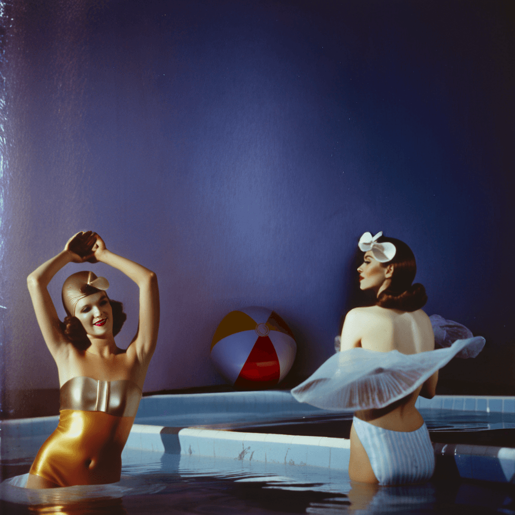 In Autofiction: My Collaborator, the non-human collaborator becomes the agent generating the initial image. The AI outputs are not mere pastiches but uncanny recombinations, in which Simmons’ signature motifs (surrogate models for self-portraits, constructed sets, bodies of water, theatrical mise-en-scène) shimmer at the edges of unfamiliar arrangements. This interplay between authorship and collaboration, memory and estrangement, past and future, runs throughout the works, both individually and as a collective.